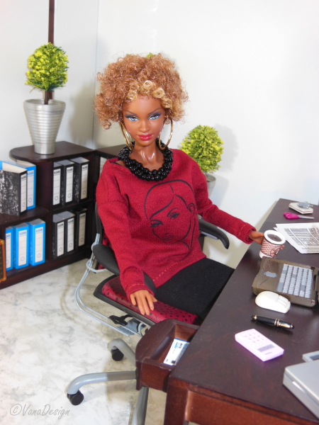 Both of us are wearing gorgeous new Fashions by Frau E. and the woman spiced up the office room. Great! - 12-2013